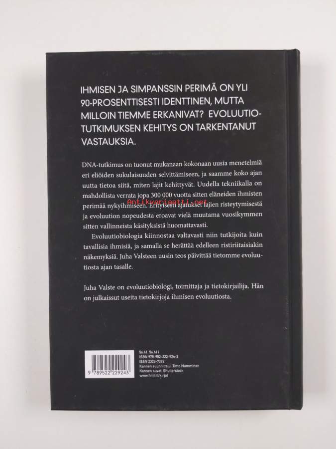 Muu(t) tekijä(t): Kauko KyöstiöSarja: Kirjokansi 157Asiasanat: ihminen, evoluutio, esihistoria, evoluutioteoria, elämän synty, lajit, populaatiot, luonnonvalinta, perimä, geenit, lajiutuminen, evoluutiobiologia