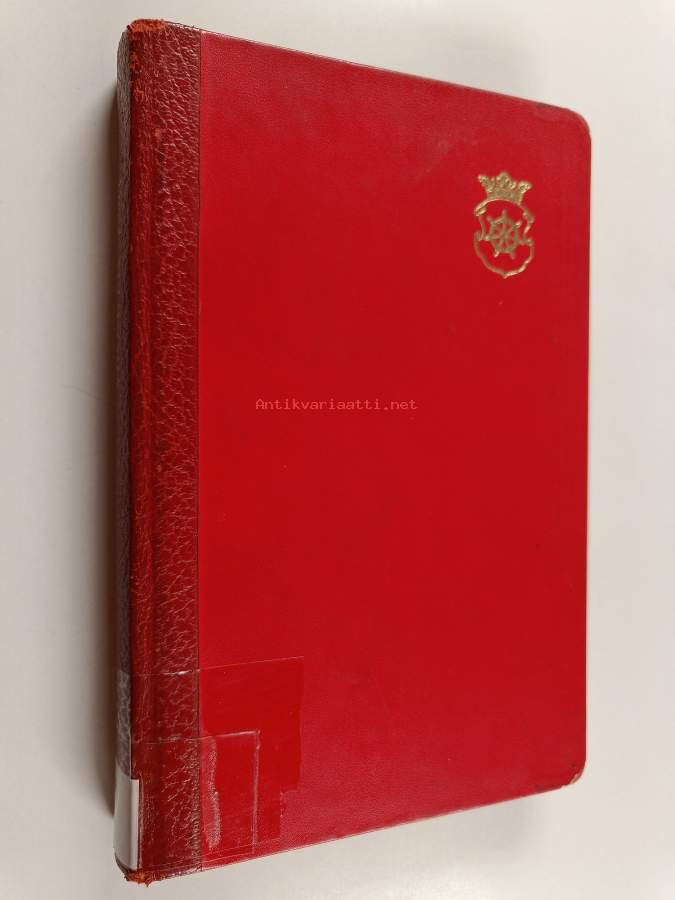 Hyvä. Tarkempi kuntoluokka: K3- ; Pientä käytön jälkeä kansissa, jälkisidos (aikalaissidos, alkuperäiset nidotun version kannet sidottu mukaan), selkämyksessä hieman vinoutta, kirjaston poistokirja