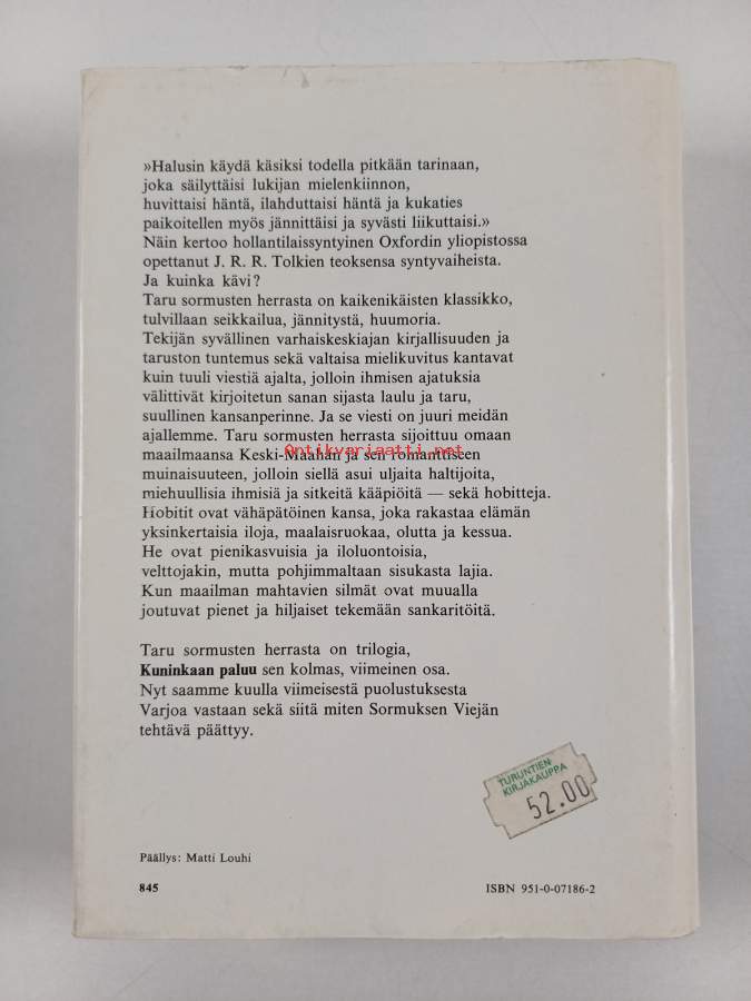Muu(t) tekijä(t): Kersti Juva, Panu PekkanenSarja: Taru sormusten herrasta 3Alkuteos: The lord of the ringsAsiasanat: klassikot