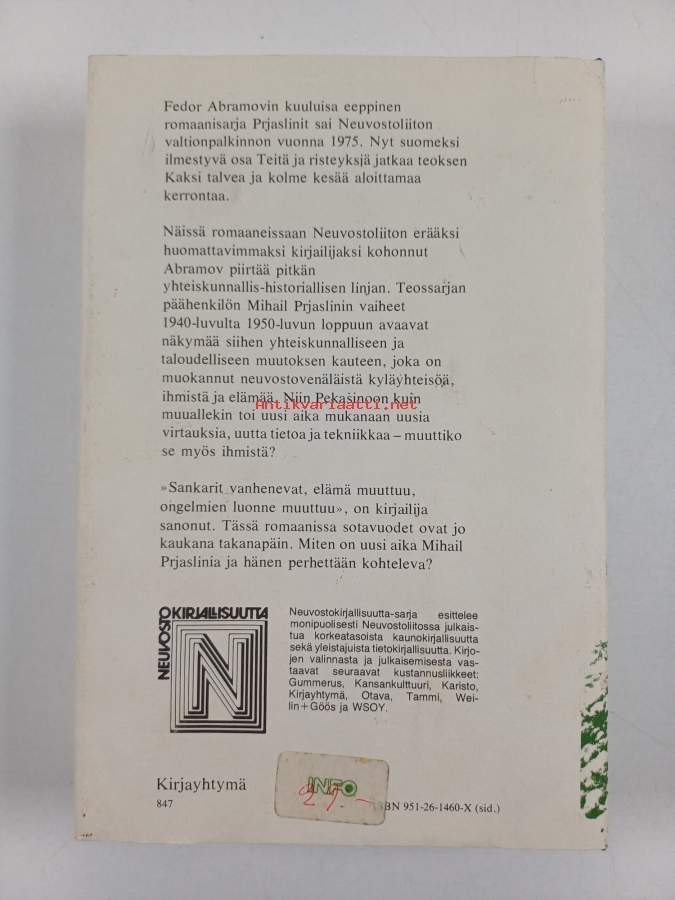 Hyvä. Tarkempi kuntoluokka: K3+ ; Selkämyksessä hieman vinoutta, takana vanha hintalappu. Kansipaperin kunto: pientä kulumaa