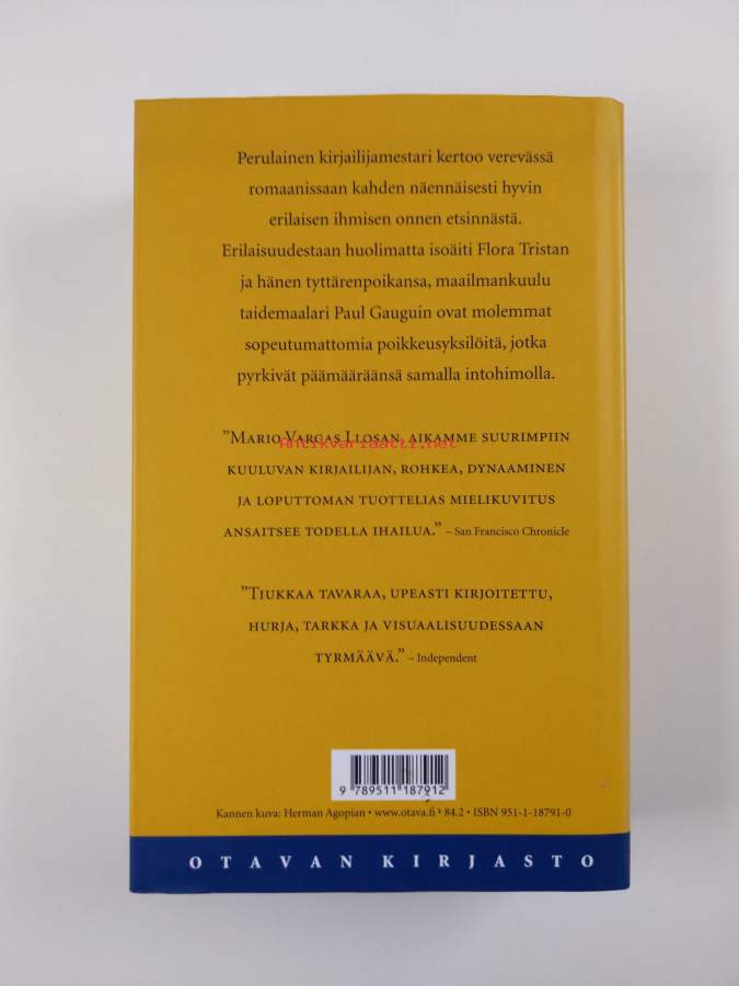 Muu(t) tekijä(t): Sulamit HirvasMerkinnät: omistajamerkintäSarja: Otavan kirjasto 170Alkuteos: El paraiso en la otra esquinaAsiasanat: Paul Gauguin