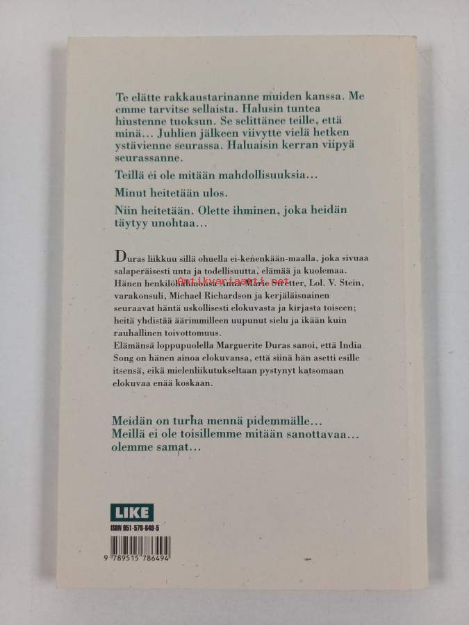 Muu(t) tekijä(t): Kristina HaatajaMerkinnät: omistajamerkintäAlkuteos: India Song