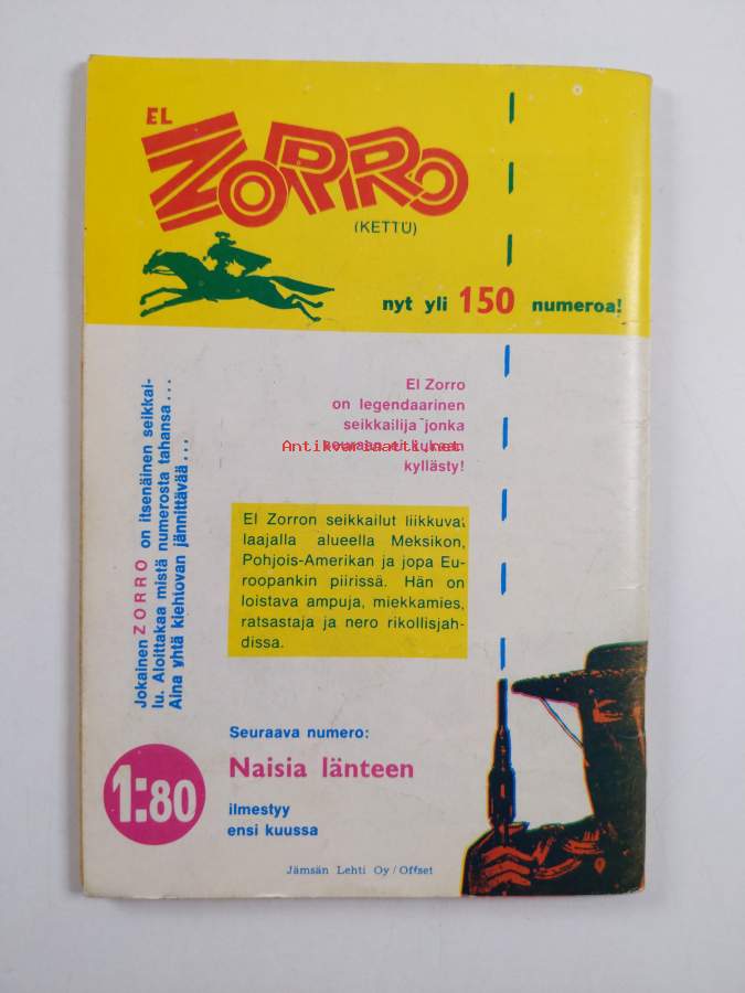 El Zorro - Zorro iskee harhaan. N:o 152 N:o 9 1971. (Kioskikirjallisuus, lukulehdet, seikkailulukemisto)