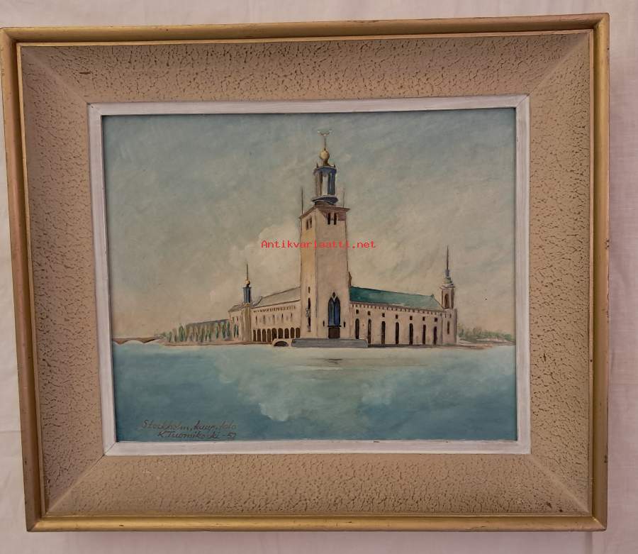 Myydään tunnelmallinen ja kaunis öljyvärimaalaus vuodelta 1952. Aiheena Tukholman ikoninen kaupungintalo. Teos on Kauko Tuomikosken käsialaa ja se on maalattu tyylikkäästi aikansa hengessä. Teos edustaa perinteistä realistista kaupunkikuvaustaKauko Tuomikoski oli suomalainen harrastajamaalari, joka tunnetaan erityisesti kotiseutuaiheisista ja matkoiltaan maalaamistaan teoksista. Hän ei kuulu Suomen eturivin taiteilijoihin, joiden teoksia myytäisiin suurissa kansainvälisissä huutokaupoissa, mutta hänen töitään liikkuu tasaisesti suomalaisilla markkinoilla (erityisesti Pohjois-Suomen ja Oulun seudulla).Tämä on aito öljyvärityö, ei painokuva. Maalaus on kiinni alkuperäisissä, upeasti ajan patinoimissa krakeloiduissa kehyksissä, jotka kruunaavat 50-luvun estetiikan. Sopii erinomaisesti vintage-sisustukseen tai taiteen ystävälle.• Taiteilija: Kauko Tuomikoski• Tekniikka: Öljyväri levylle• Mitat: 32 x 39 cm (kehysten kanssa hieman suurempi)• Kunto: Hyvä ikäisekseen, valmis suoraan seinälle.• Vuosi: 1952Hinta: 75 € / Järkevä tarjous Sijainti: Kouvola/Tampere Toimitustapa: Mieluiten nouto teoksen herkkyyden vuoksi, mutta postitus onnistuu ostajan vastuulla ja kuluilla Matkahuollon välityksellä periaatteella: Ovelta ovelle, särkyvää-kategoriassa. Pakkauskulut toteutuneina n. 10 e. Matkahuollon veloitus n. 70 euroa. Palautukset ostajan piikkiin. Ennakkomaksu !!!!!