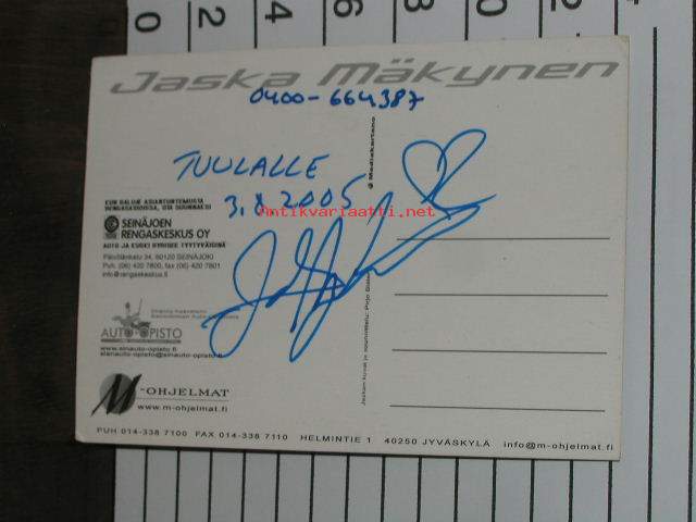 jaska mäkynen -ihailijakortti / fanikortti signeerattu