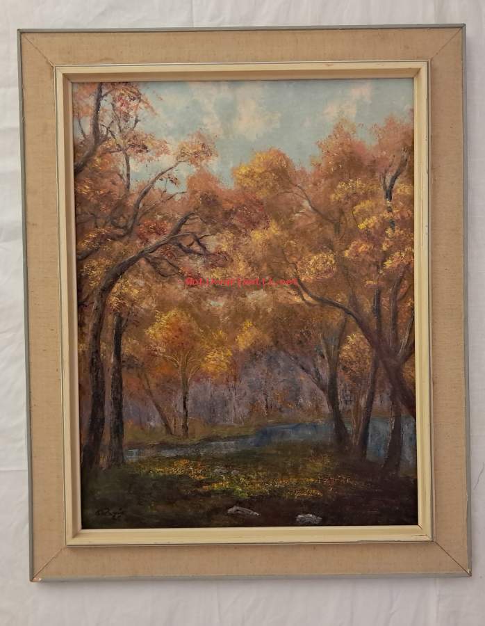 Myydään upea, suurikokoinen öljyvärimaalaus, joka tuo tilaan välitöntä arvokkuutta ja lämpöä. Kyseessä on ulkomaisen taiteilijan ( Oleg Rajev ???) taidonnäyte vuodelta 1965. Rajev oli tunnettu venäläinen realisti, joka erikoistui nimenomaan tämänkaltaisiin tunnelmallisiin metsämaisemiin ja "vuodenaikojen kuvauksiin". Hänen tyylilleen on ominaista pehmeä valon käyttö ja lehtien väritys, joka vaihtelee keltaisen ja ruosteenruskean sävyissä – juuri kuten tässä teoksessa.Teos edustaa klassista eurooppalaista maisemamaalausta, jossa yhdistyvät pehmeä impressionistinen siveltimenjälki ja upea valon käsittely. Maalauksen syksyinen paletti – kullan, okran ja poltetun oranssin sävyt – heijastuu kauniisti joen pintaan, luoden syvän ja rauhoittavan tunnelman.Tämä ei ole massatuotantoa, vaan uniikki teos, jonka tekninen taso kestää lähemmänkin tarkastelun.Tuotetiedot:• Tekniikka: Öljy kankaalle (aito öljyvärimaalaus, ei painokuva).• Mitat: 64 x 49 cm (pelkkä kangas). Mukana tulevat alkuperäiset, teokseen sointuvat tyylikehykset.• Signeeraus: Signeerattu ja päivätty (-65) alareunassa.• Taitelija О. Раев/Oleg Rajev ( 1923-1991)• Kunto: Erinomainen ikäisekseen. Värit ovat säilyneet hehkuvina ja pinta on ehjä.Tästä laadukas ja kookas taideteos kodin paraatipaikalle, toimistoon tai vaikka lahjaksi antiikin ystävälle. Teos sopii erinomaisesti niin klassiseen kuin skandinaaviseenkin sisustukseen tuomaan kontrastia ja lämpöä.• Tekniikka: Öljy kankaalle (aito öljyvärimaalaus, ei painokuva).• Mitat: 64 x 49 cm (pelkkä kangas). Mukana tulevat alkuperäiset, teokseen sointuvat tyylikehykset.• Signeeraus: Signeerattu ja päivätty (-65) alareunassa.• Taitelija О. Раев/Oleg Rajev ( 1923-1991)• Kunto: Erinomainen ikäisekseen. Värit ovat säilyneet hehkuvina ja pinta on ehjä.Tästä laadukas ja kookas taideteos kodin paraatipaikalle, toimistoon tai vaikka lahjaksi antiikin ystävälle. Teos sopii erinomaisesti niin klassiseen kuin skandinaaviseenkin sisustukseen tuomaan kontrastia ja lämpöä.