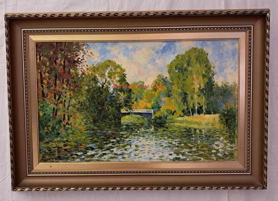 Myydään upea ja tunnelmallinen öljyvärimaalaus kankaalle, joka esittää historiallista Pavlovskin puistoa Pietarin lähellä. Teos on taitavasti maalattu, ja siinä on kaunis valon ja varjon leikki sekä raikas värimaailma. Tyyliltään maalaus yhdistää perinteistä realismia ja impressionistista otetta. Evgeny (Eugeni) Malykh, vuonna 1956 syntynyt venäläinen realistinen taidemaalari, joka tunnetaan erityisesti Pietarin ja Pavlovskin puiston maisemista, impressionistisesta valonkäytöstä ja klassisen akatemian koulutuksesta. Opettaa taiteellisen toimintansa lisäski piirustusta, maalausta ja sommittelua Pietarin taideakatemiassa. Koulutus:• I.D. Shadr -taidekoulu, Jekaterinburg (valmistui 1975).• Pietarin taideakatemia (Repinin akatemia), johon hän pääsi 1981.• Opiskeli viimeiset vuodet Andrei Mylnikovin, Neuvostoliiton kansantaiteilijan, johdolla monumentaalimaalauksen studiossa• Taiteilija: E. Malyh (Малых Е.)• Vuosi: 1995• Tekniikka: Öljy kankaalle• Koko: 36 x 59 cm (ilman kehyksiä). Kehysten kanssa leveys n. [lisää tähän mitattu leveys] cm.• Kunto: Erinomainen, sekä maalaus että kehykset ovat siistit.• Kehykset: Tyylikkäät ja juhlavat kultasävyiset puukehykset, jotka korostavat maalauksen sävyjä.Tämä teos on ajaton valinta kodin sisustukseen tai lahjaksi klassisen taiteen ystävälle. Maalaus on valmis suoraan seinälle ripustettavaksi.Hinta: 195 € / Järkevä tarjous Sijainti: Kouvola/Tampere Toimitustapa: Mieluiten nouto teoksen herkkyyden vuoksi, mutta postitus onnistuu ostajan vastuulla ja kuluilla Matkahuollon välityksellä periaatteella: Ovelta ovelle, särkyvää-kategoriassa. Pakkauskulut toteutuneina n. 10 e. Matkahuollon veloitus n. 70 euroa. Palautukset ostajan piikkiin. Ennakkomaksu !!!!!