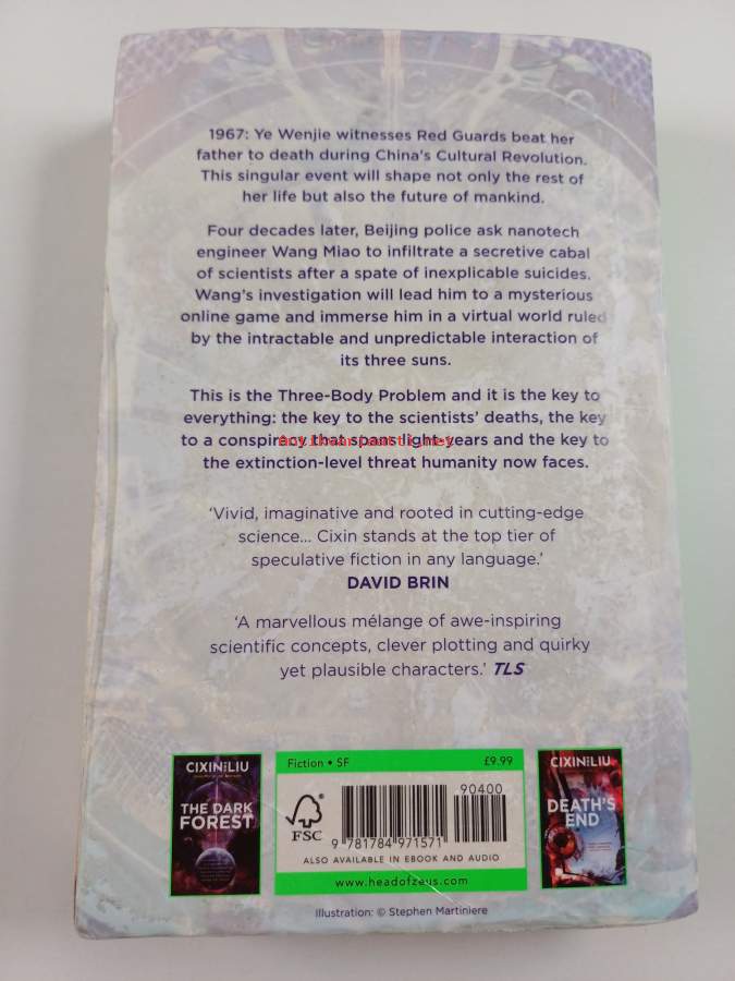 kansien pintamateriaali jonkin verran repeilee reunoilta, etukannessa tarrasta jäänyttä liimajälkeä