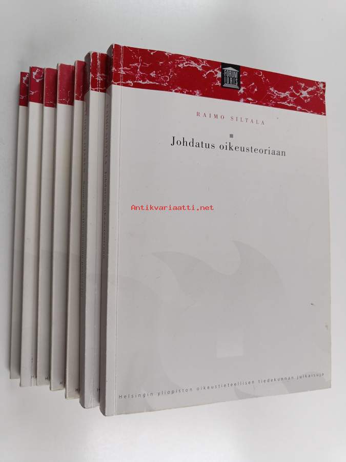 Koko nimi: Helsingin yliopiston oikeustieteellisen tiedekunnan julkaisuja-setti (7 kirjaa): Julkisoikeuden perusteet ; Varallisuusoikeuden alkeet ; Oikeudenkäynti ja pakkokäytäntö ; Suomen valtiosäännön perusteita ; Johdatus oikeusteoriaan ; Oikeudellisen riskienhallinnan perusteita ; Työoikeuden pääasiat