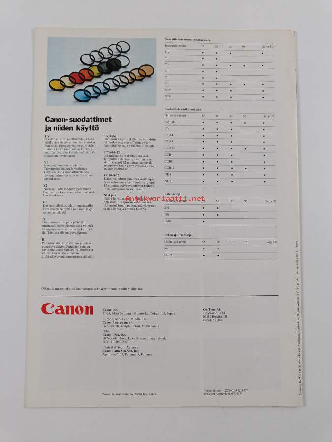 Canon Reflex kamerasarja 1977 -myyntiesite