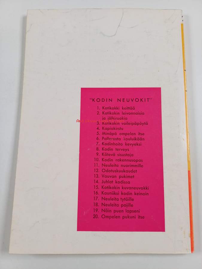 Kodin neuvokit III ompelutyöt, lastenhoito ja terveys; 4 Kapiokirstu, 20 Ompelen pukuni itse, Odotuskuukaudet, 6 Pallerosta koluikään, 8 Kodin terveys