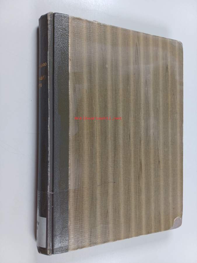 Tyydyttävä. Hieman kulumaa kansissa, hieman repeämää kansissa, pienoista kolhua reunoilla ja kulmissa, selkämyksessä hieman vinoutta, kirjaston poistokirja, jälkisidos (alkuperäiset nidotun version kannet sidottu mukaan)