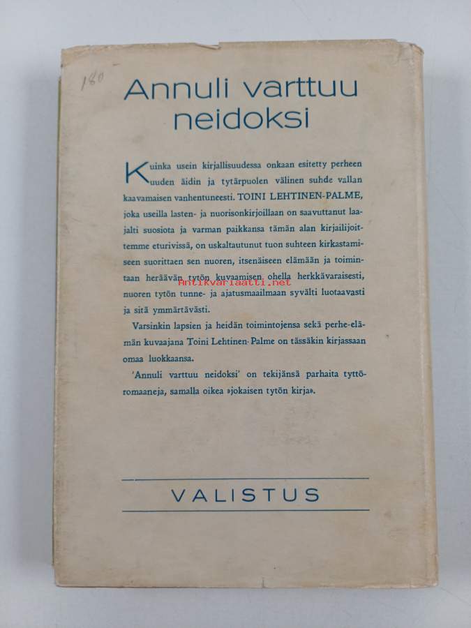 Hyvä. Tarkempi kuntoluokka: K3- ; Hieman kolhua selkämyksen päissä, hieman nuhruisuutta, selkämyksessä hieman vinoutta. Kansipaperin kunto: kulumaa/pienehköjä repeämiä & tahraisuutta
