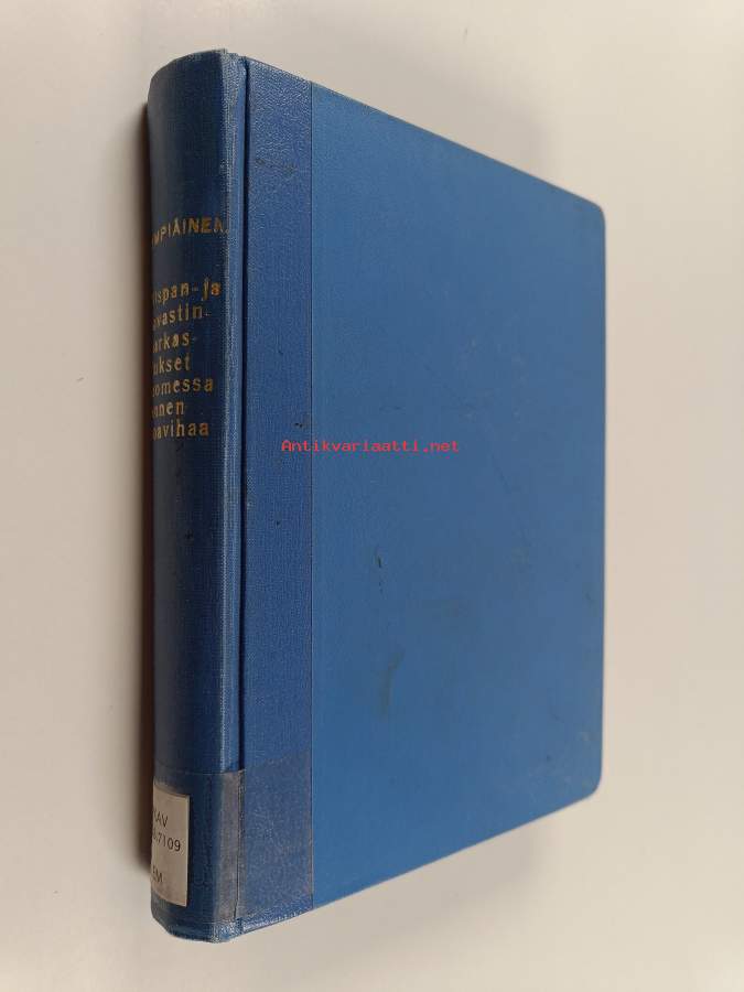 Tyydyttävä. Hieman kulumaa kansissa, selkämyksessä vinoutta, kirjaston poistokirja, jälkisidos (aikalaissidos)