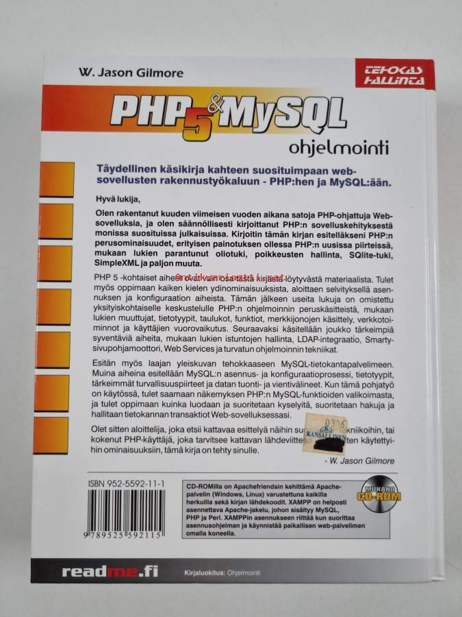 Alkuteos: Beginning PHP 5 and MySQL : from novice to professionalAsiasanat: ohjelmointi, ohjelmointikielet, PHP, olio-ohjelmointi