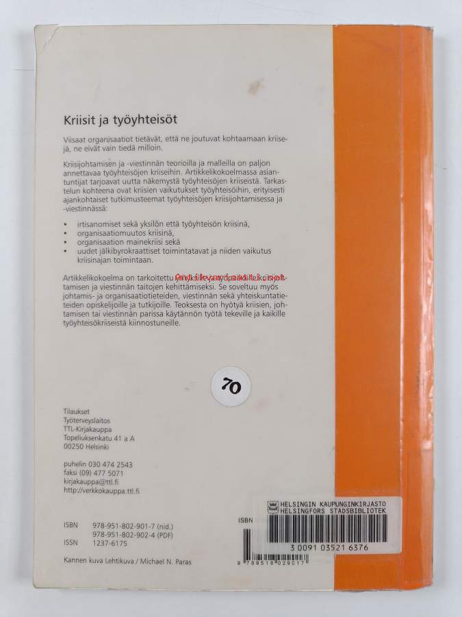 Muu(t) tekijä(t): Pekka Aula, Hannele SeeckSarja: Työ ja ihminen, Tutkimusraportti 37Asiasanat: kriisit, työyhteisöt, muutos, sosiaalinen media, viestintäkulttuuri, organisaatiot, maine, media, riskit, irtisanominen, julkisuuskuva, viestintätaidot, uutisointi, leadership, hallinnonuudistus, kriisiviestintä, communication, Personnel management, kriisijohtaminen, Mass media, Organization and Administration, crisis intervention, Organizational Policy, Communications Media