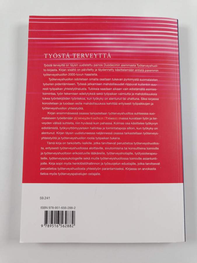 Muu(t) tekijä(t): Kari-Pekka Martimo, Mari Antti-Poika ym.Asiasanat: työterveys, työkyky, työelämä, henkinen hyvinvointi, työympäristö, terveyden edistäminen, terveydenhuolto, työhyvinvointi, työturvallisuus, työolot, työn kuormittavuus, työterveyshuolto, fyysinen kuormittavuus, psykososiaaliset tekijät, työkyvyttömyys