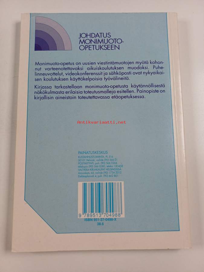 Merkinnät: omistajamerkintä leikattu pois etulehden ylälaidastaAsiasanat: opetusmenetelmät, aikuiskoulutus, didaktiikka, monimuoto-opetus, etäopetus