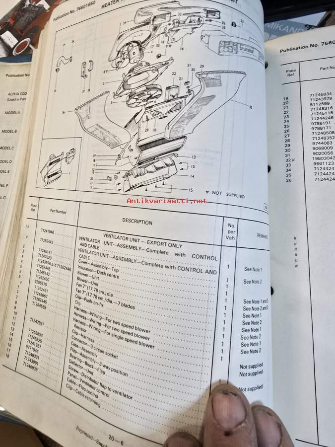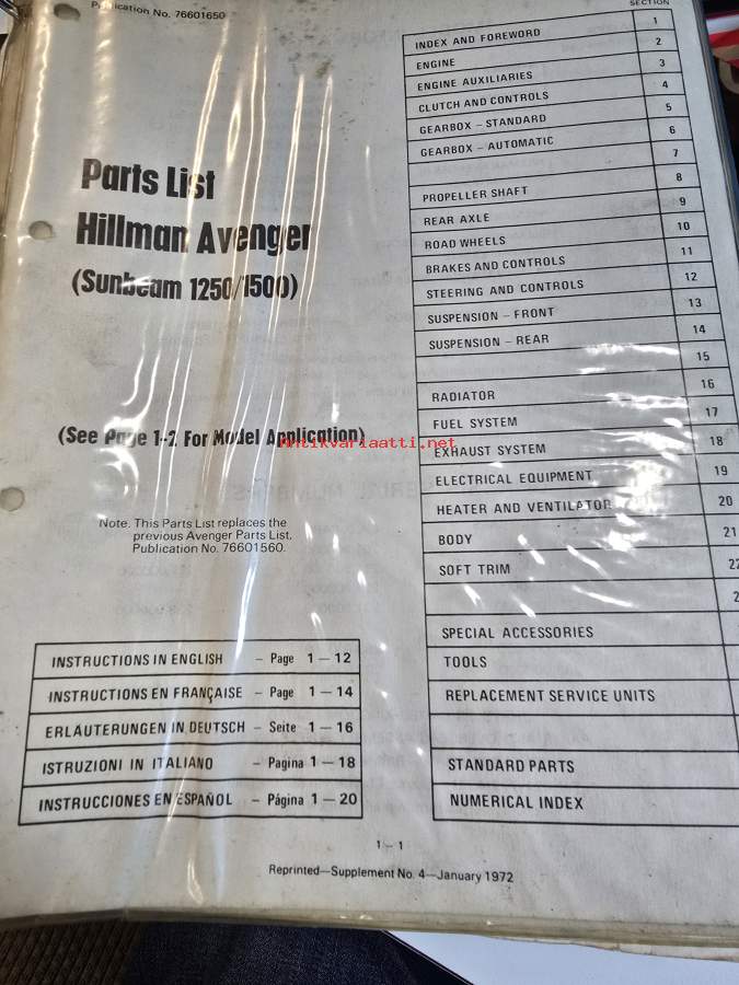 Koko 30 x 28 cm. Varaosaluettelo kansio
