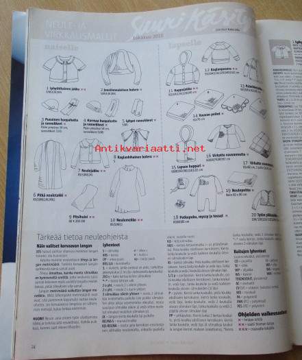 Suuri Käsityökerho 6/1975. virkataan kesäverho, kaitaliina, bikinit ja takki. Mukana kaava-arkki 12 kaksi jakkua jne. Katso sisältö kuvasta.