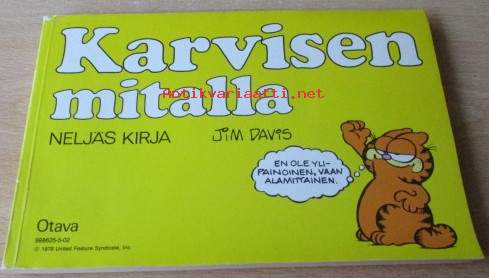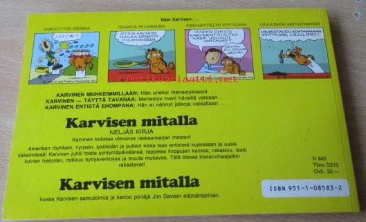 Paksu- Karvinen 2 . Jim Davis Kolme Karvista: Karvisen mitalla, .Karvisen kakkukestit ja Karvinen syö sydämestään. P.2006.