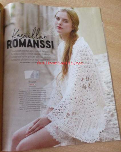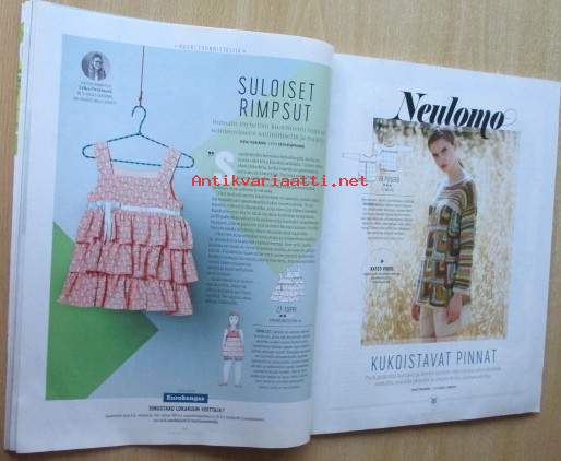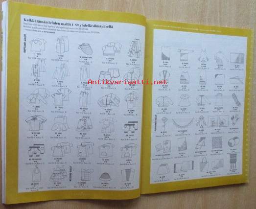 Suuri Käsityökerho 6/1975. virkataan kesäverho, kaitaliina, bikinit ja takki. Mukana kaava-arkki 12 kaksi jakkua jne. Katso sisältö kuvasta.