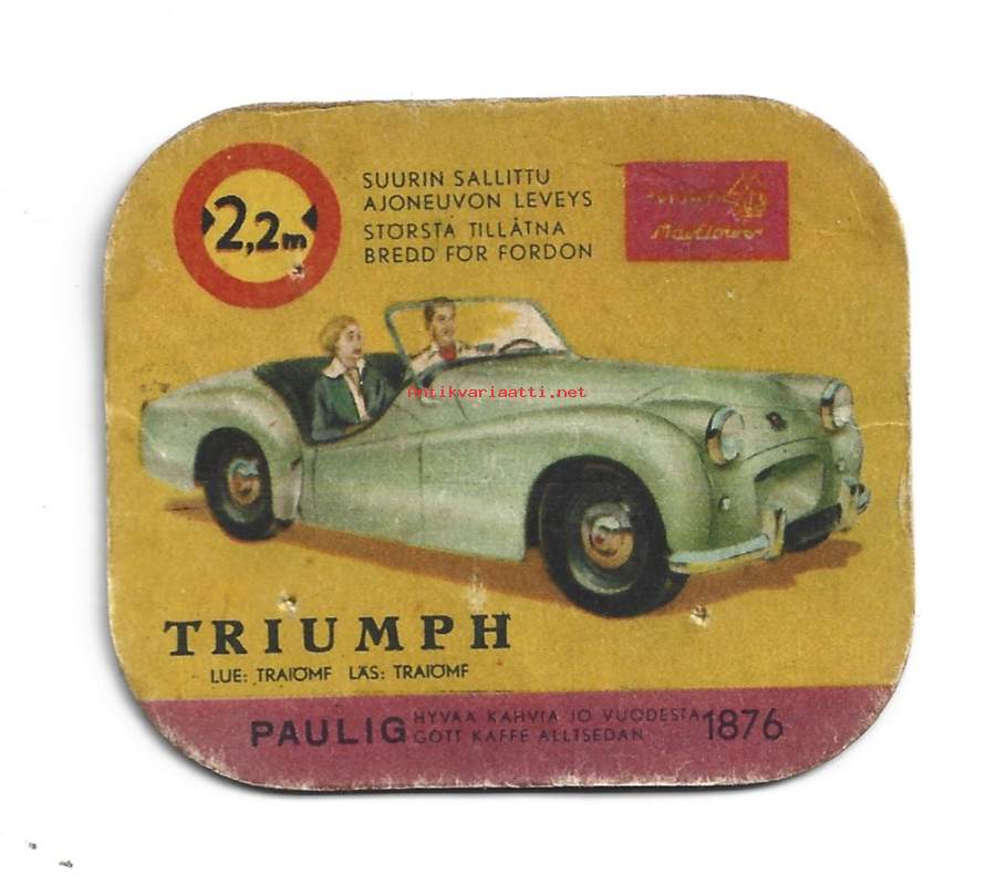Triumph- autokuva autokortti, keräilykuva, kahvipakettikuva