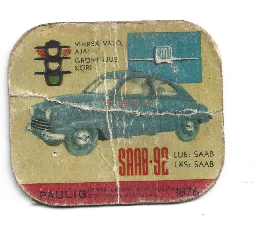 Saab 92- autokuva autokortti, keräilykuva, kahvipakettikuva