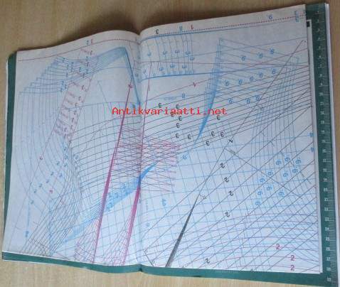 Kaava-arkit mukana kiinni lehdessä, Lehti siisti ehjä, takakannessa edellisen omistajan nimi ylivedetty kynällä, Posittus kirjepakettina
