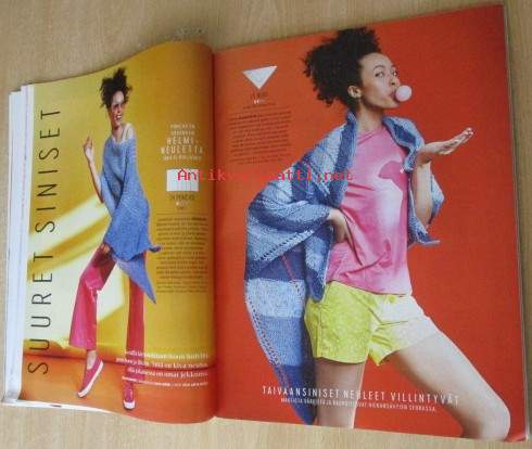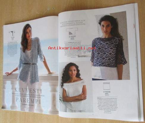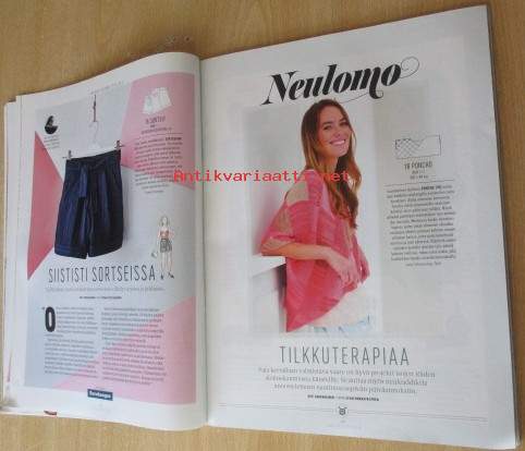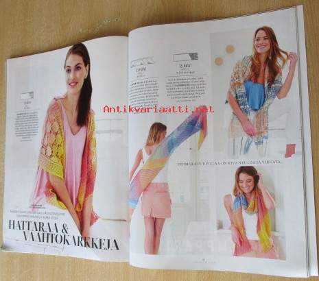 Suuri Käsityökerho 6/1975. virkataan kesäverho, kaitaliina, bikinit ja takki. Mukana kaava-arkki 12 kaksi jakkua jne. Katso sisältö kuvasta.