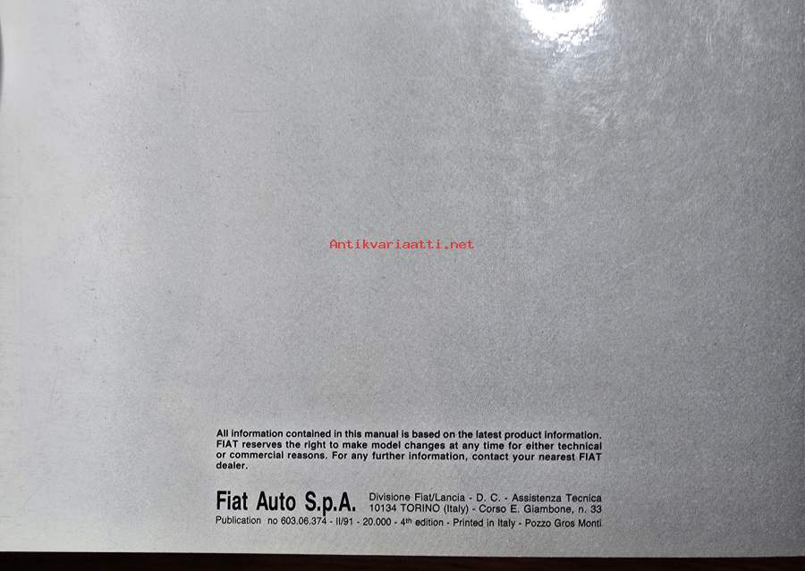 Fiat Service Manual Special Pollution Control Versions Uno 75 e.i., Ritmo 75 CL e.i. - 75 S e.i. - Regata 75 e.i. - 75 S e.i. - Croma e.i. (M.Y.86) - Uno 45 -