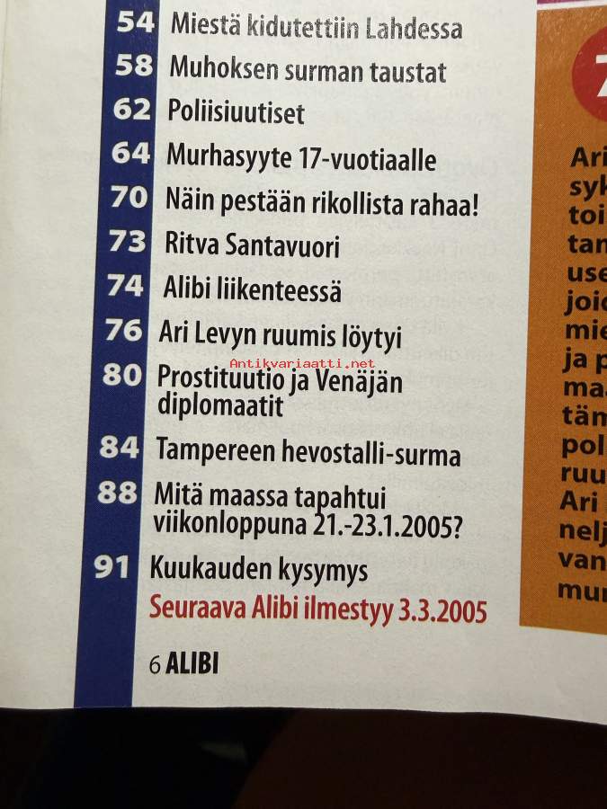 Alibi 2005 nr 2, katso sisällysluettelo