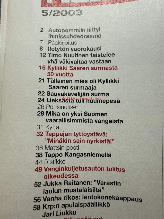 Alibi 2003 nr 5, katso sisällysluettelo