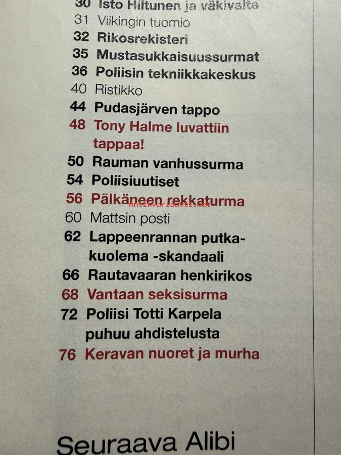 Alibi 2001 nr 12, katso sisällysluettelo