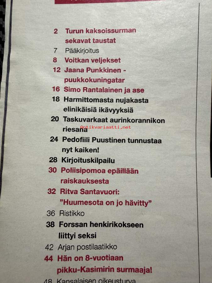 Alibi 2000 nr 5, katso sisällysluettelo