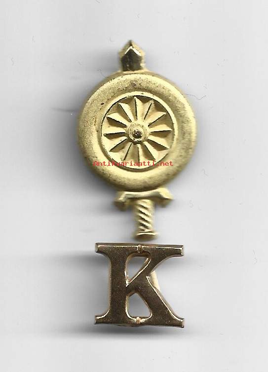 Vanha malli "pyörä ja miekka" ja K-kirjain käytössä vuoteen 1972, sen jälkeen uusi miekat ristissä ja avain
