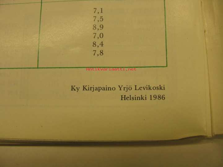Käsikirja ja liite. Muistiinpanosivu lopussa revitty.