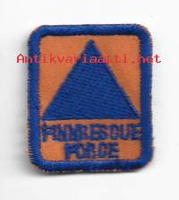 Finn Rescue Force (FRF) -nimiselle joukolle, joka on Suomen kansainvälinen pelastuskomennuskunta - hihamerkki kangasmerkki 35x30 mm