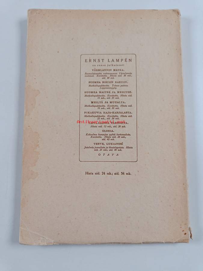 Tyydyttävä. Hieman kulumaa, pientä repeämää kansissa. etukannen alakulma puuttuu