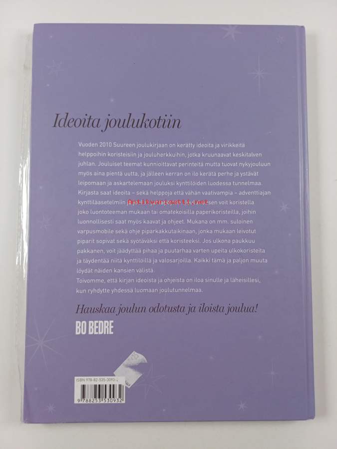 Muu(t) tekijä(t): Virpi Vainikainen, Birgit Kaarvig ym.Alkuteos: Den store julebog : de bedste ideer fra Bo Bedre 2010Asiasanat: askartelu, ruokaohjeet, leivonnaiset, joulu, kattaus, joulukoristeet