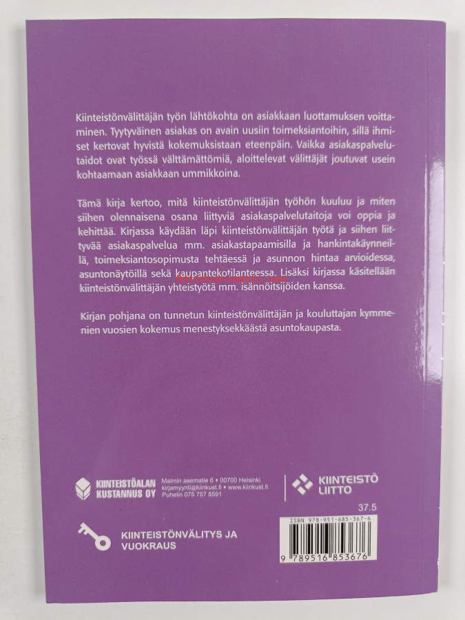Asiasanat: markkinointi, asiakaslähtöisyys, koulutus, myynti, asuntokauppa, kiinteistönvälitys, asiakaspalvelu, hinnoittelu, esittelyt, kiinteistönvälittäjät, asunnonvälitys, toimeksianto