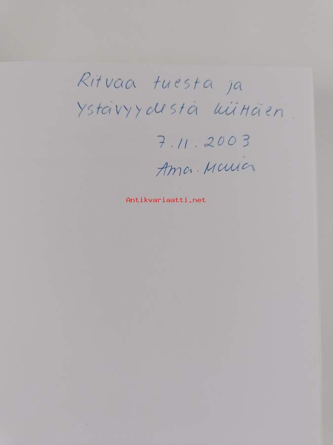 Hyvä. Hieman kolhua kansissa, takana hintalapun jäämää, selkämyksessä hieman vinoutta. tekijän signeeraama