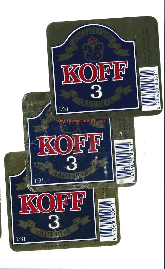 Helsinki , Pori ja Tampere Koff 3 olut olutetiketti 3 eril