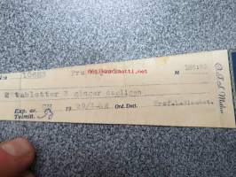 Apotheca Cronan Loviisa Mether , resepti signatuuri reseptipussi 1959