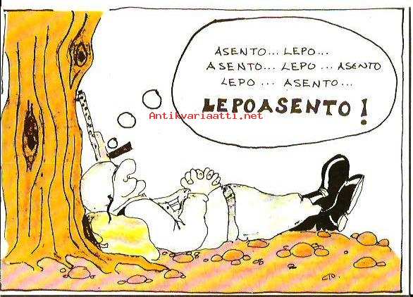 Asento ... lepo ... lepoasento- sotilaspostikortti blanco