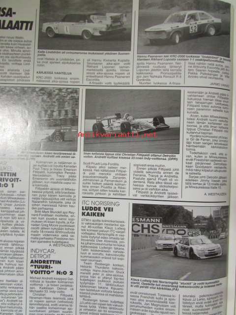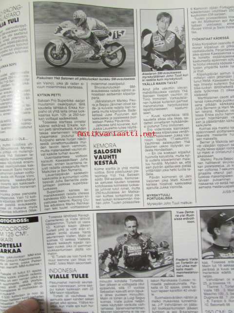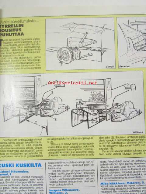 Vauhdin Maailma 1996 nr 7 -mm. Formula 1 Espanja ja Kanada GP:t, ITC Helsinki, Rata-SM Hämeenlinna ja Alastaro, Indy 500 & U.S. 500, Motocross-MM Heinola, Historic-ralli, Fiat Barchetta & Alfa Spider, Peugeot 306 GTi, Renault Megane ja Volvo 850 R, Honda Valkyrie, Jacques Villeneuve, Elämäni kisa "Nappi" Jousanen.21 x 29 cm.