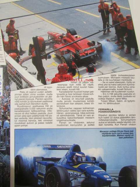 Vauhdin Maailma 1996 nr 7 -mm. Formula 1 Espanja ja Kanada GP:t, ITC Helsinki, Rata-SM Hämeenlinna ja Alastaro, Indy 500 & U.S. 500, Motocross-MM Heinola,