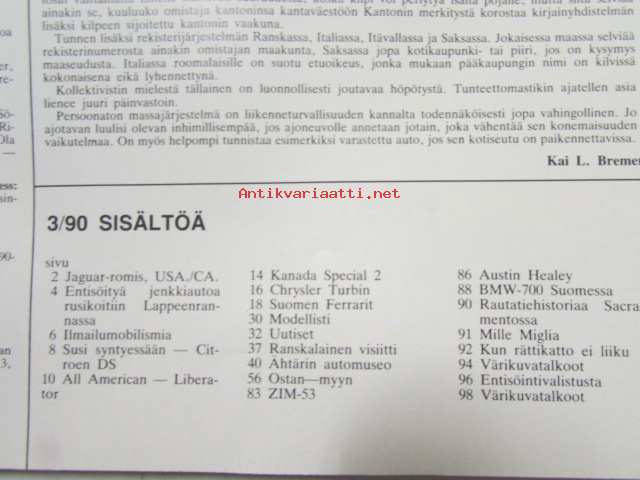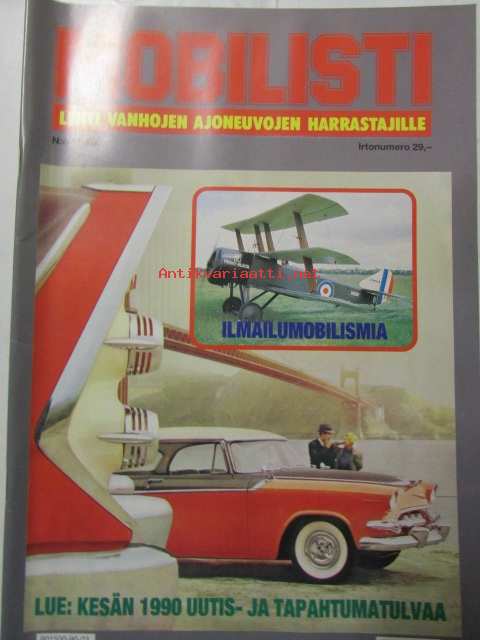 Mobilisti 1990 nr 3 -Lehti vanhojen autojen harrastajille, sisällysluettelo löytyy kuvista.