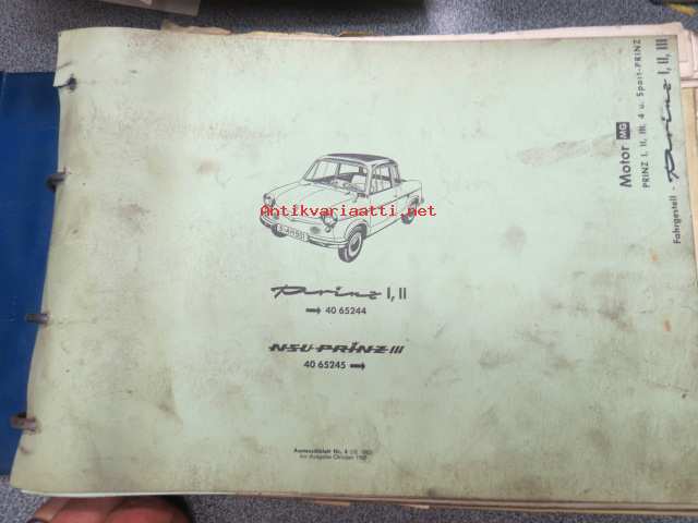 NSU Prinz I, II to 40 65244, III 40 65245 onwards, Ersatzteilliste, -varaosaluettelo