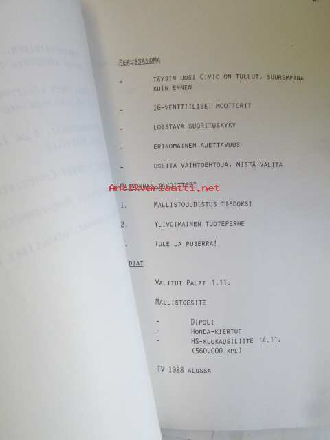 Honda Civic 1988 tuotekansio katso tarkemmin kuvista mahdolliset mallit ja sisällys.